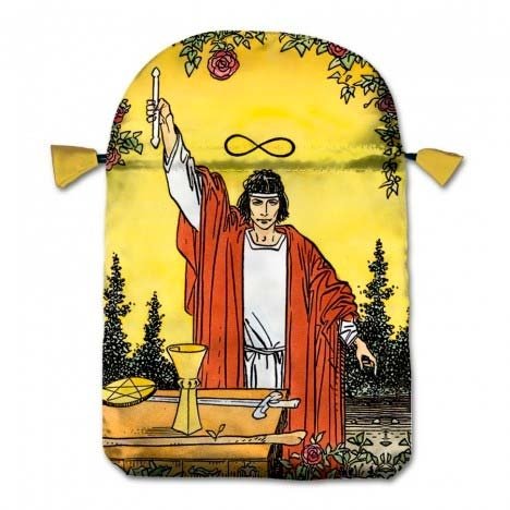 A bolsa é feita em cetim e reforçada na parte interior. Comporta baralhos tamanhos padrão e pequeno com conforto e segurança.