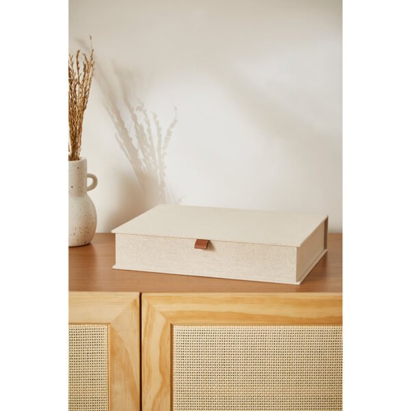 A caixa revestida em linho ajuda a organizar o espaço e ainda complementa a decoração. Perfeita para guardar oráculos e deixar sua mesa de consultas mais arrumada para o dia a dia. Seu design elegante e minimalista permite um uso versátil, além de oráculos você também pode guardar pequenos amuletos.