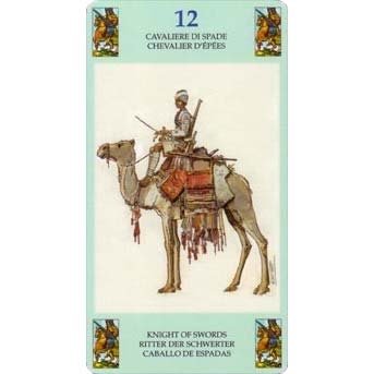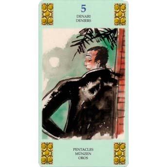 Baralho com 78 cartas de Tarô. Inclui livreto com instruções em Alemão, Espanhol, Francês, Inglês e Italiano.