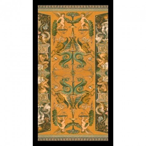 Baralho em formato grande, impresso com detalhes dourado laminado. As imagens são fascinantes, de estilo renascentista, os detalhes em ouro resplandecente fazem com que quase seja possível ver o próprio rosto refletido.