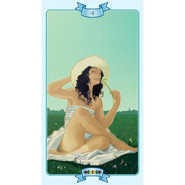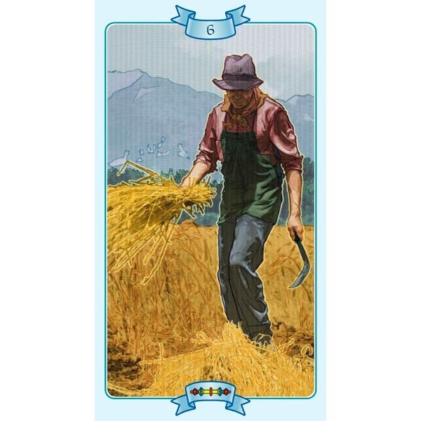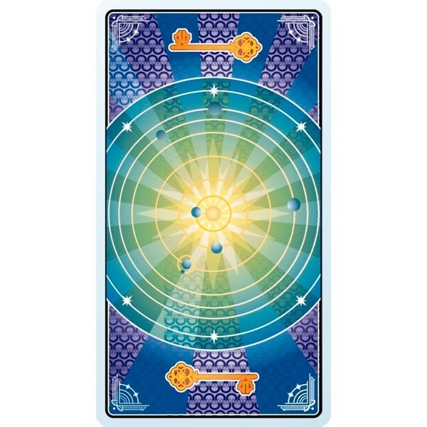 Baralho com 78 cartas de Tarô. Inclui livreto com instruções em Alemão, Espanhol, Francês, Inglês e Italiano.