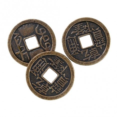 Réplica de Moedas de I Ching chinesa produzida em latão com acabamento em Ouro Velho.