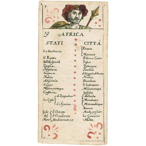 O título comprido deste baralho, como foi publicado, era O Útil com Dileto, ou seja, Geografia entrelaçada no jogo dos Tarôs, com as insígnias dos ilustríssimos e excelsos senhores Gonfaloneiros e Anciãos de Bolonha. Na verdade, não era um baralho dedicado ao jogo, mas um baralho educacional, chamado ‘geográfico’, que continha escrito nas cartas, informações de todos os tipos relacionadas à geografia, política e heráldica, vistas com os olhos de um erudito do século XVIII.